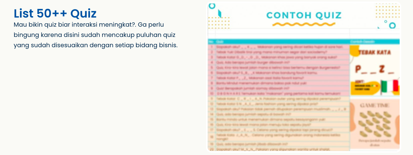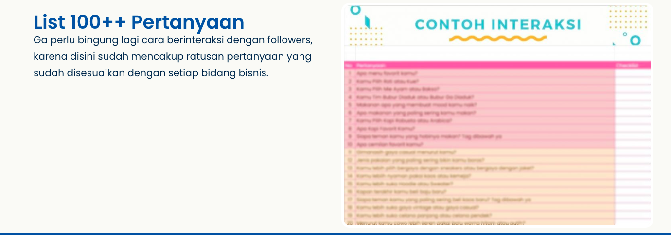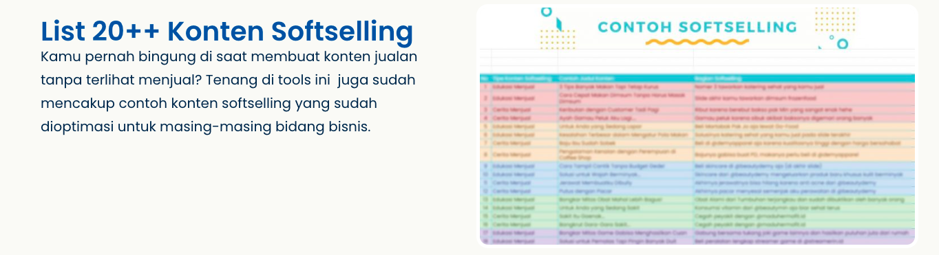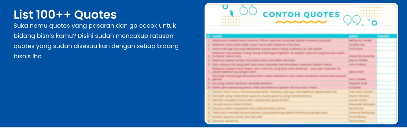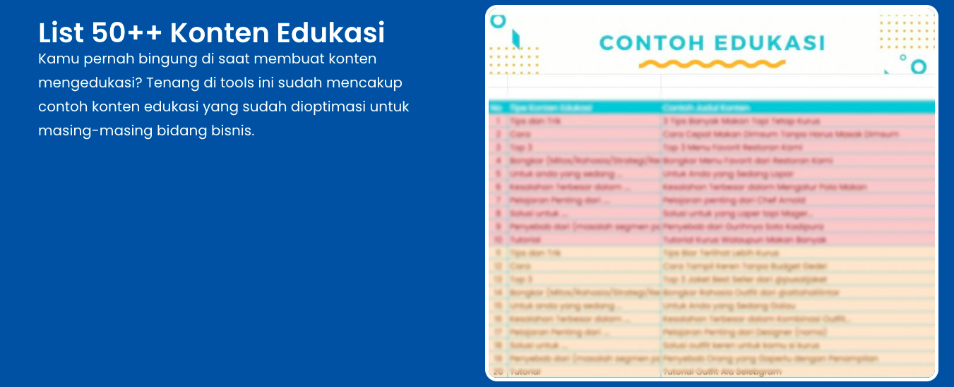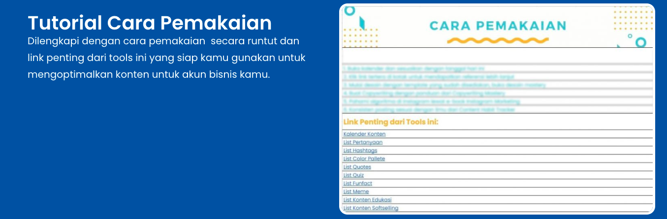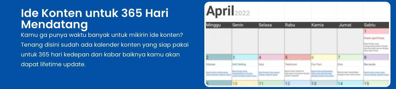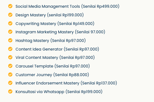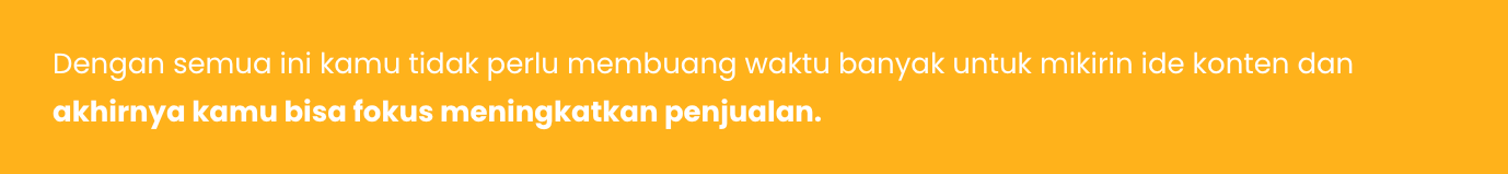 Sangat Bisa, karena disini kamu tidak hanya dibantu dari pencarian ide konten saja tapi juga di support oleh bonus ratusan template desain, puluhan template copywriting, puluhan studi kasus, dan yang paling penting nantinya kamu juga bisa konsultasi via Whatsapp.